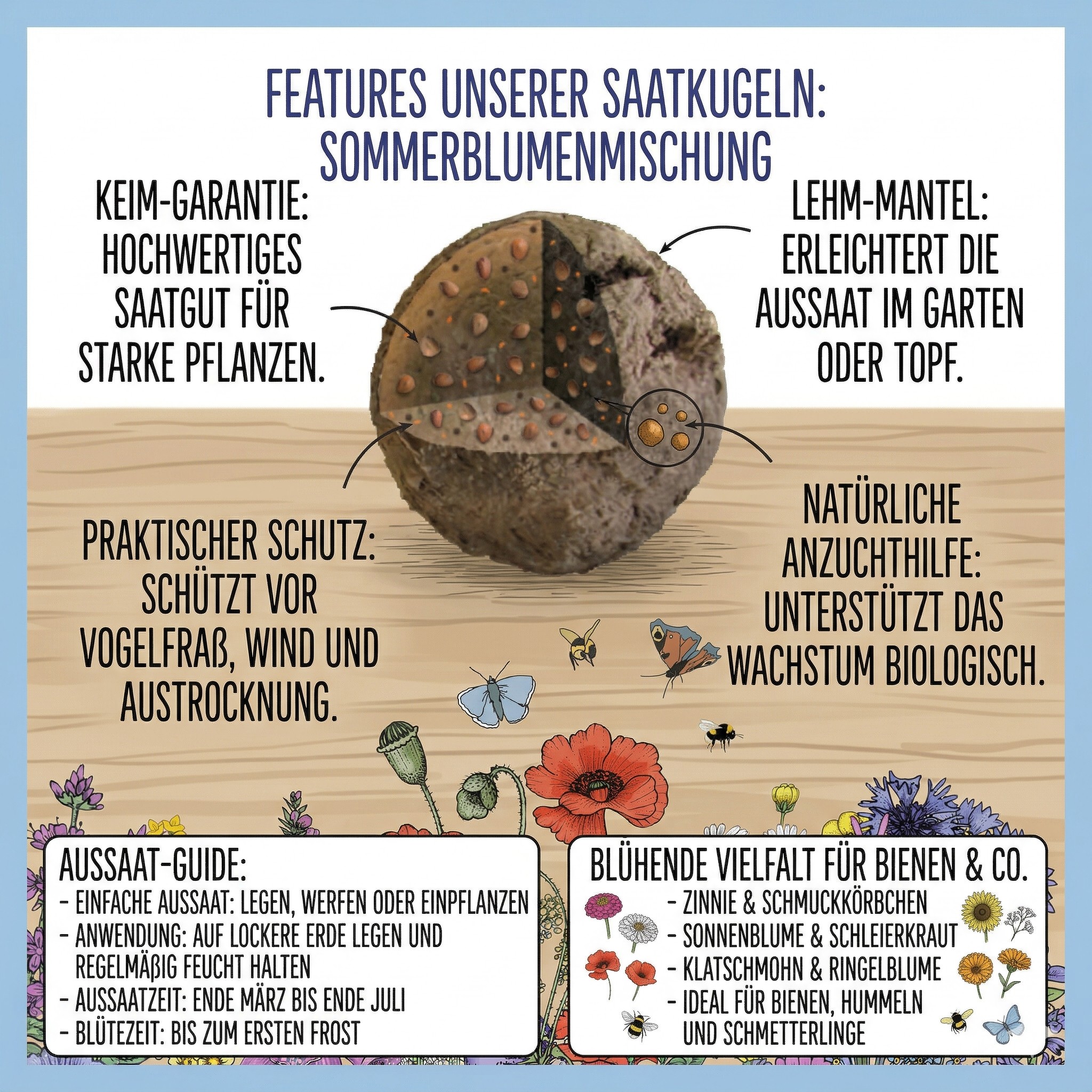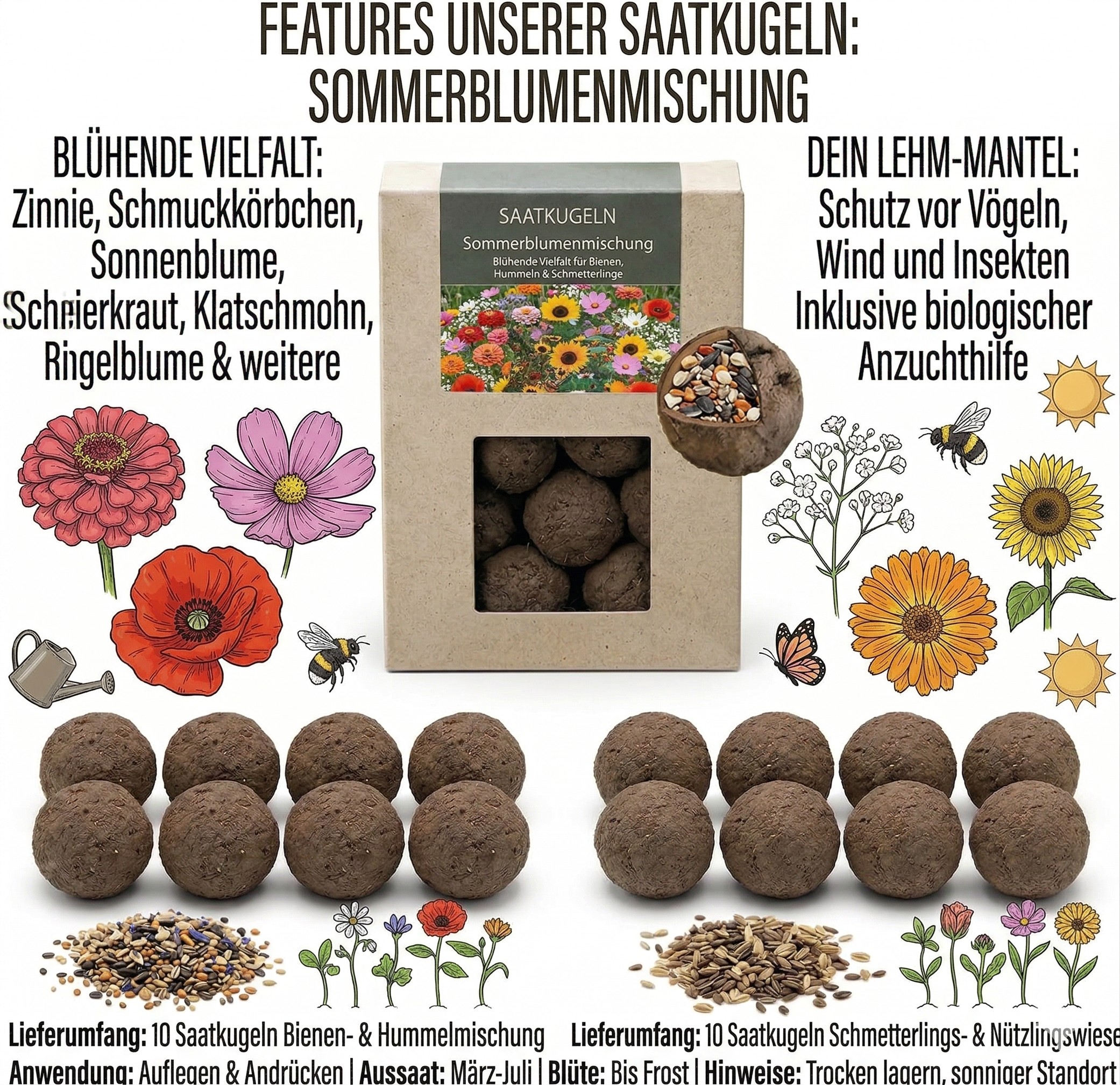 Saatkugeln Sommerblumenmischung – Blühende Vielfalt für Bienen, Hummeln & Schmetterlinge