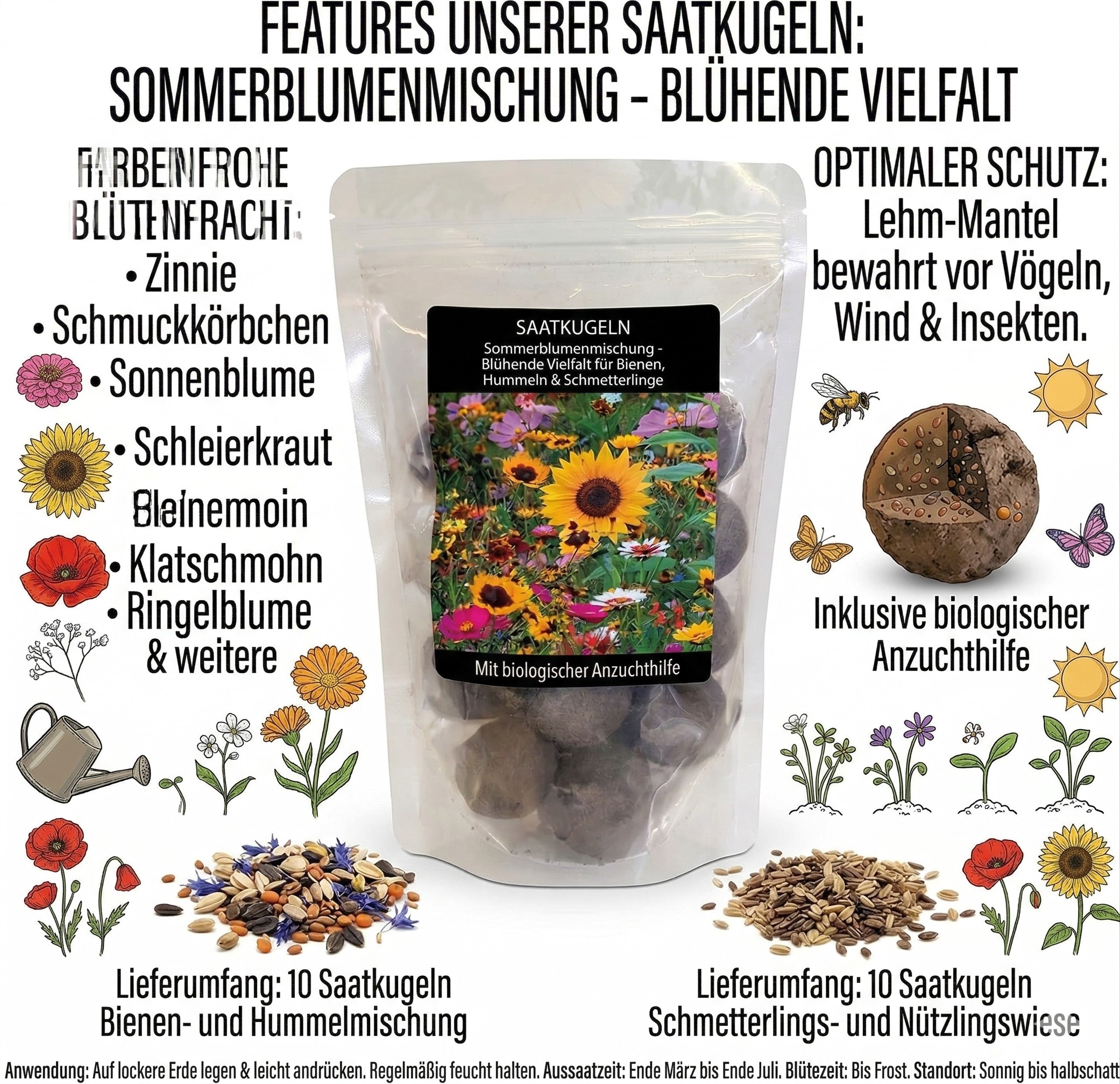 ![[Paket] 40 Stück Saatkugeln Sommerblumenmischung – Bienen- und Hummelmischung für Schmetterlinge & Nützlinge [Paket] 40 Stück Saatkugeln Sommerblumenmischung – Bienen- und Hummelmischung für Schmetterlinge & Nützlinge](https://cdn02.plentymarkets.com/6o3z34d57y8p/item/images/51030217/full/blumensaat-saehen.jpg)