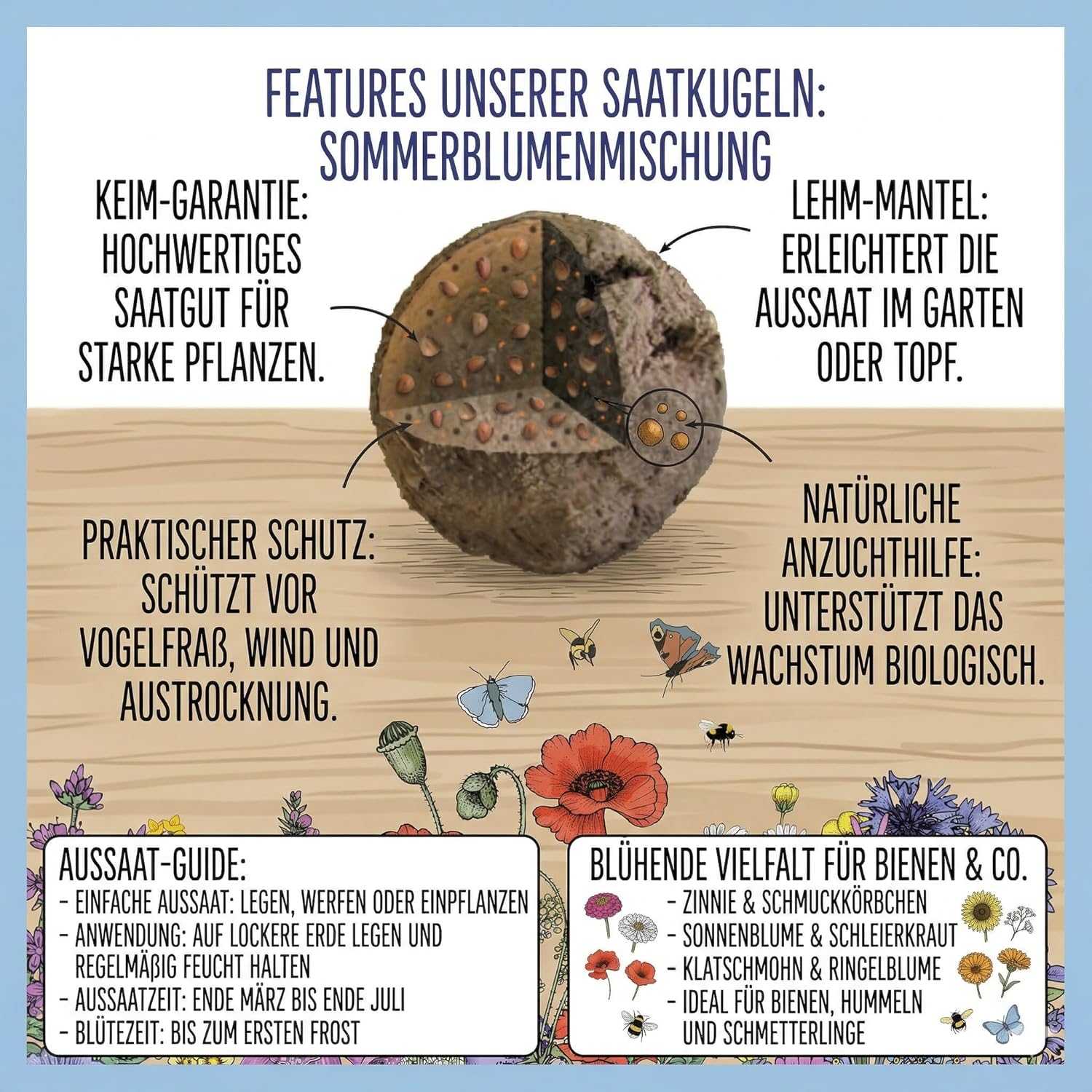 Saatkugeln Sommerblumenmischung – Blühende Vielfalt für Bienen, Hummeln & Schmetterlinge