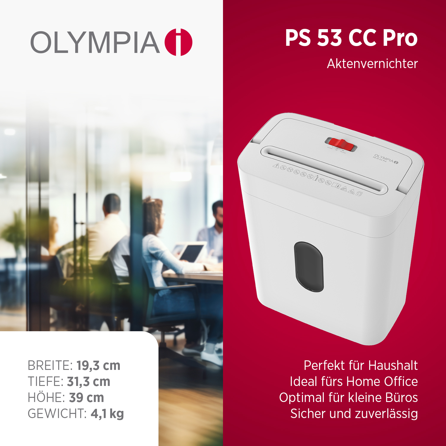 Olympia PS 53 CC Pro Aktenvernichter – Sicherer Partikelschnitt für Zuhause & Home Office