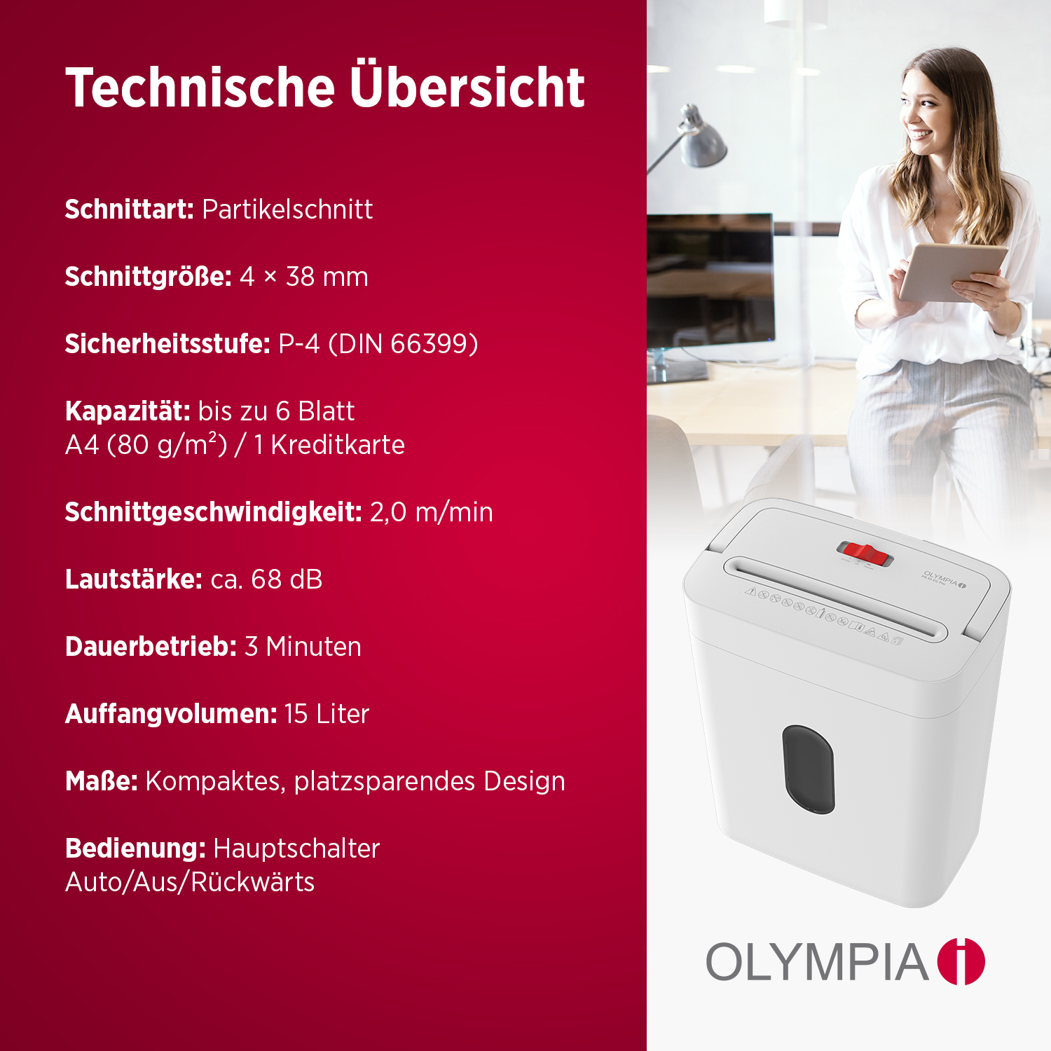Olympia PS 53 CC Pro Aktenvernichter Partikelschnitt 4x38 mm 6 Blatt