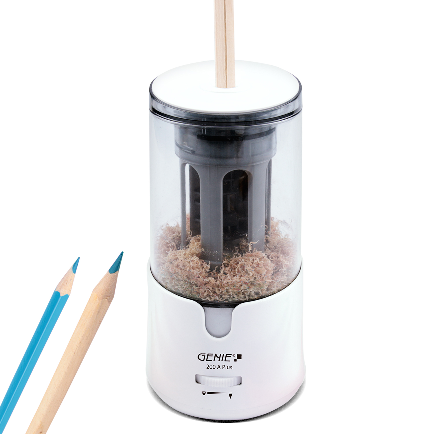 Der Genie 200A Elektrische Bleistiftspitzer ist ein universeller Spitzer, der für alle Stiftdurchmesser und Formen geeignet ist. Hier sind die wichtigsten Funktionen und Eigenschaften: