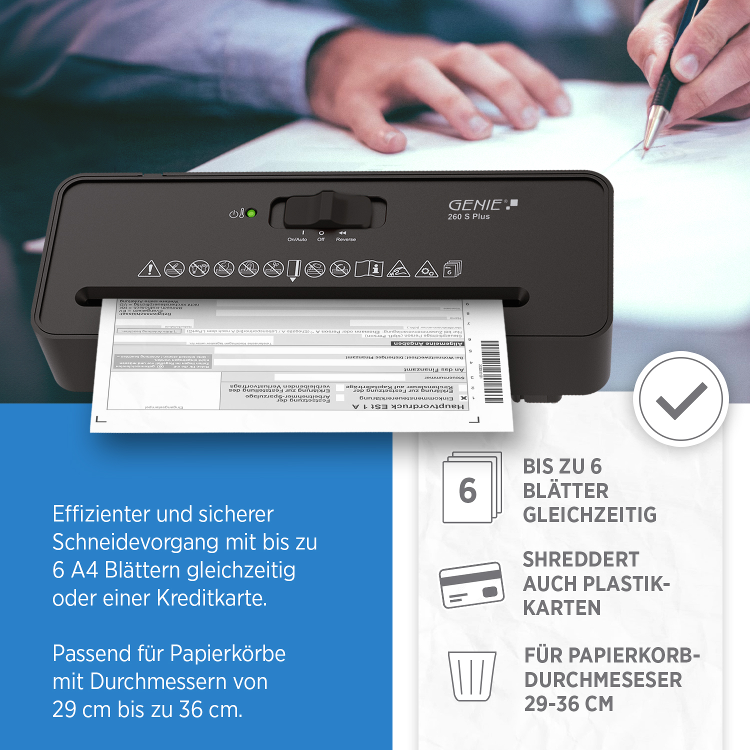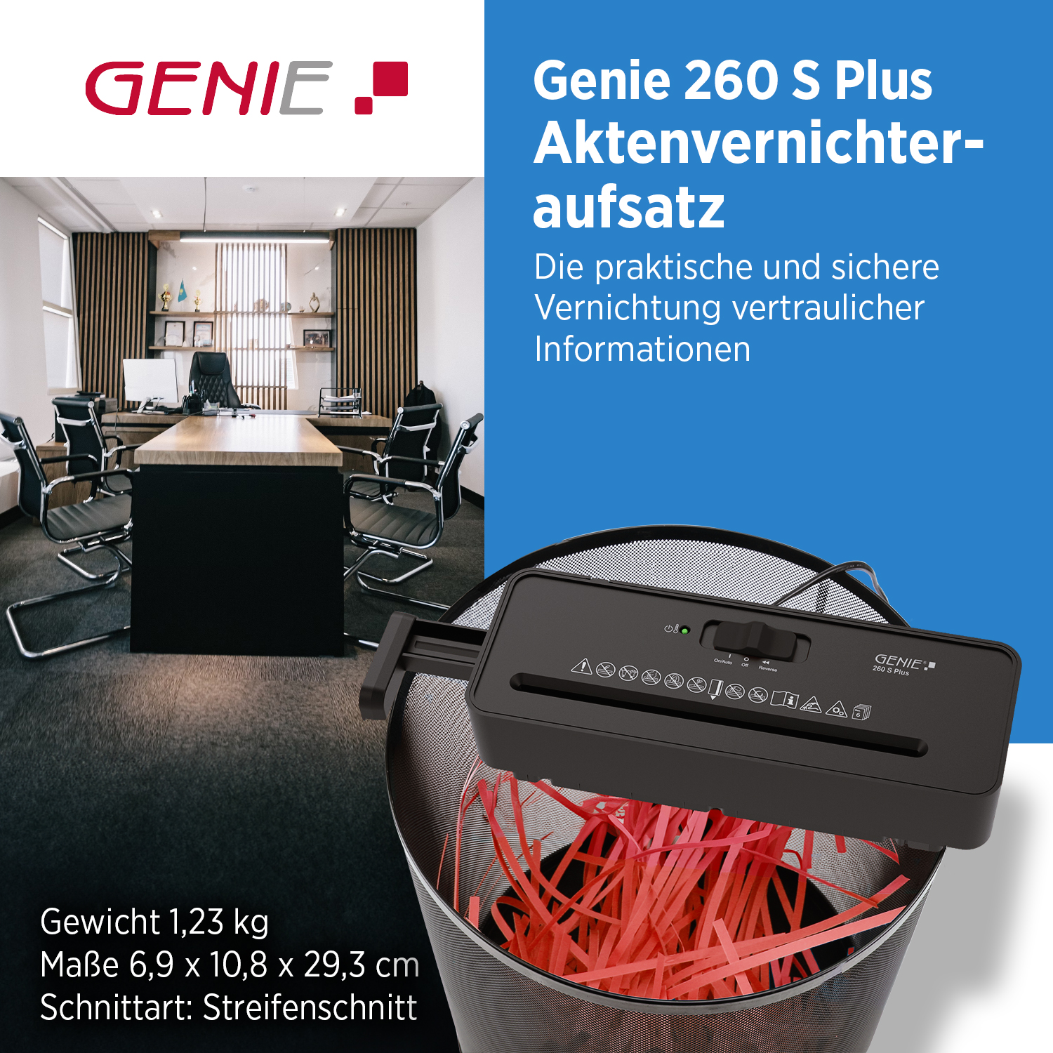 GENIE 260 S Plus – Kompakter Aktenvernichter für zu Hause