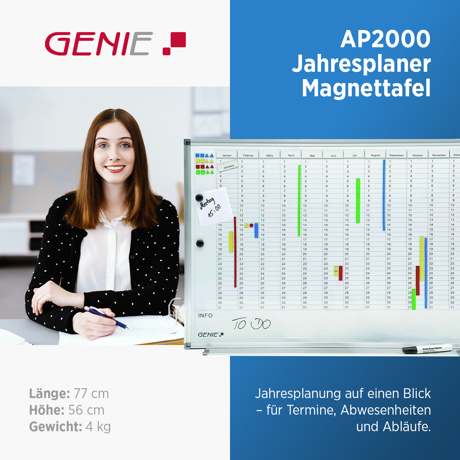 GENIE AP2000 Jahresplaner Magnettafel Terminplaner Whiteboard Wandtafel Pinnwand