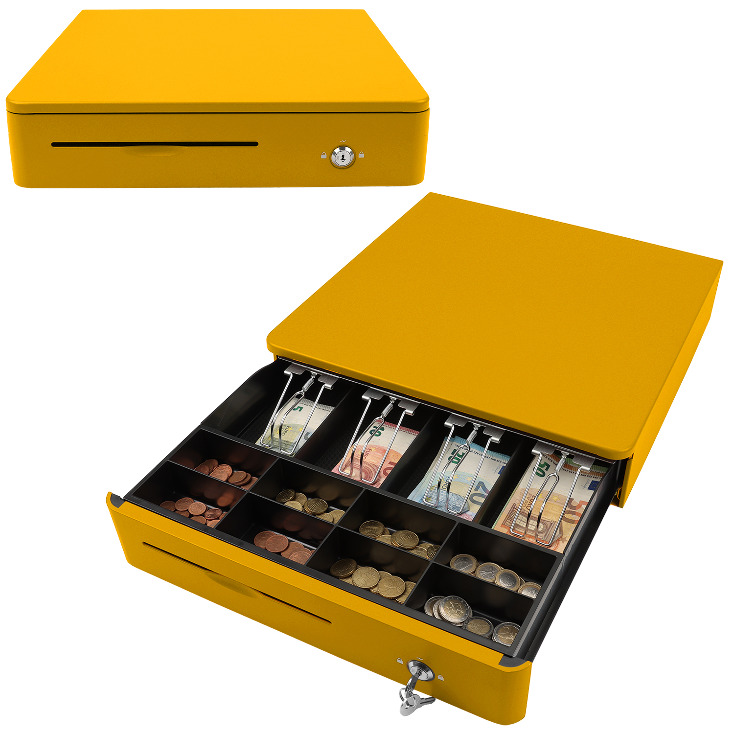 Kassenlade M405 Color Vollmetall 8 Münz- & 4 Schein-Fächer Schloss gelb