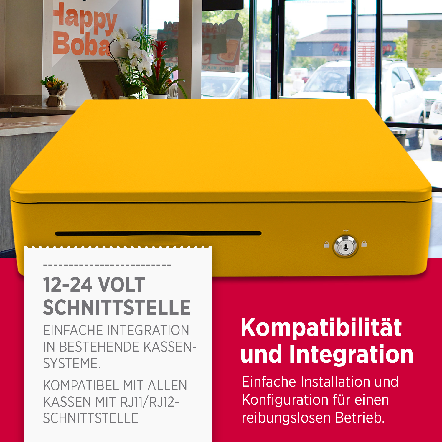 Direkt ansteuerbar (12–24 V) – kompatibel mit vielen Kassensystemen