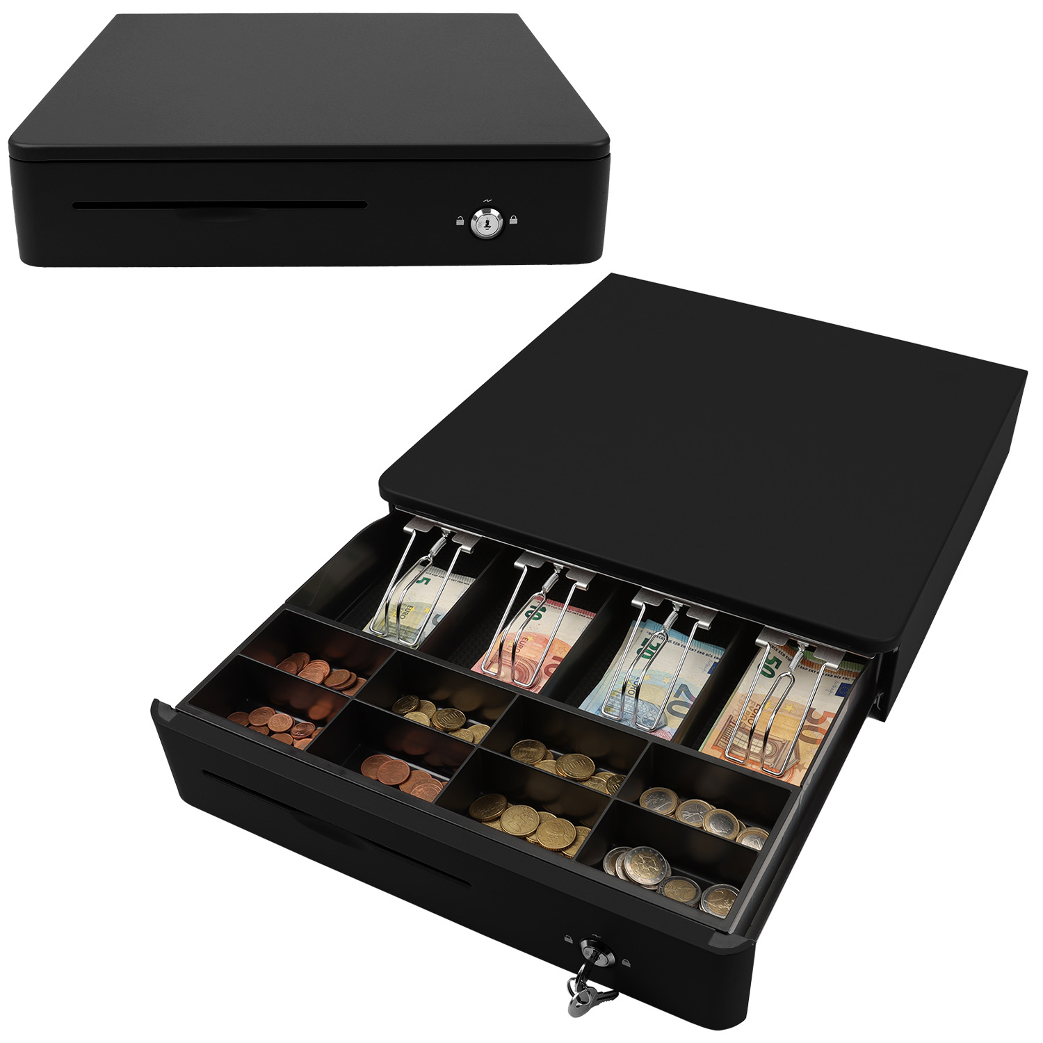 Kassenlade M405 Color Vollmetall 8 Münz- & 4 Schein-Fächer Schloss schwarz