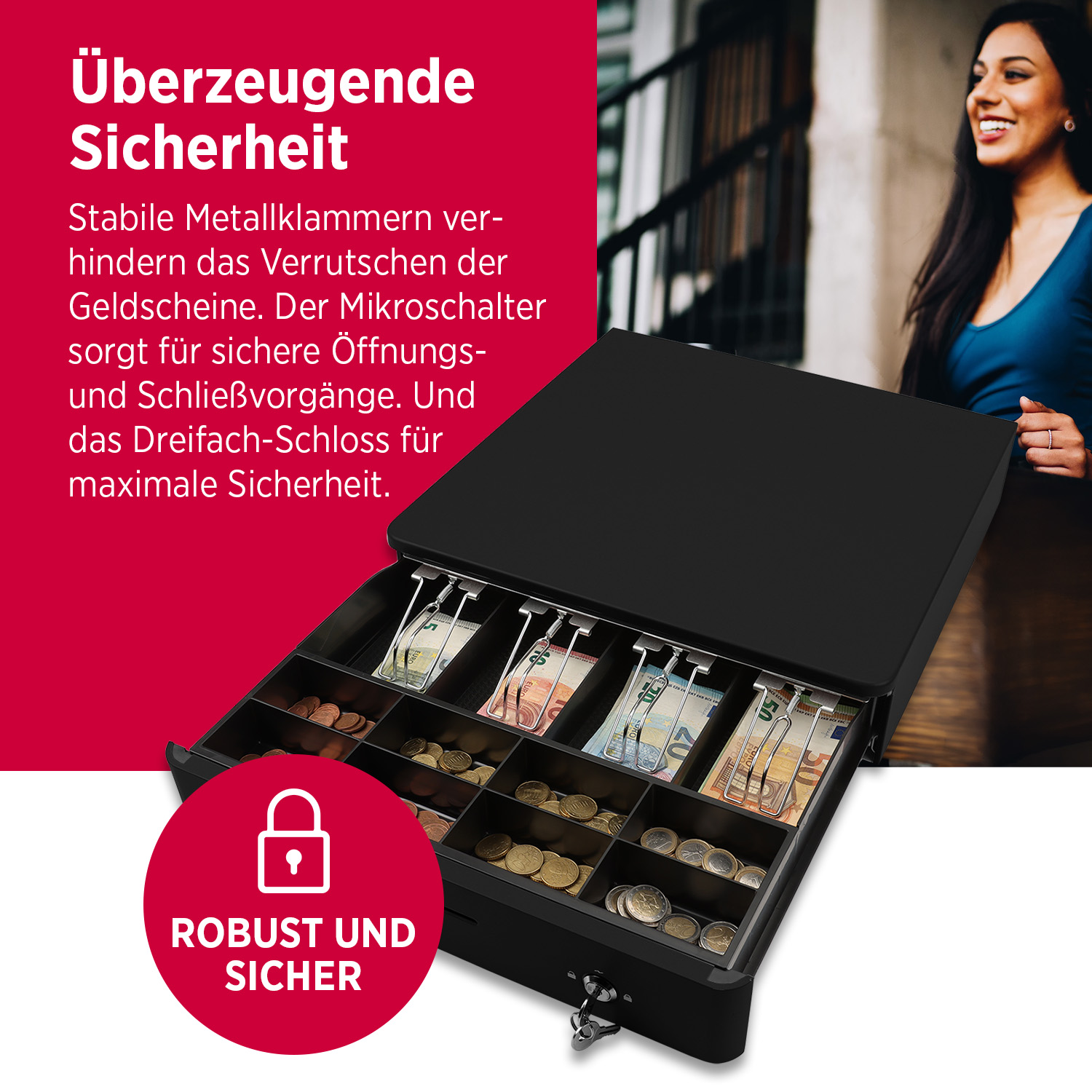 Direkt ansteuerbar (12–24 V) – kompatibel mit vielen Kassensystemen