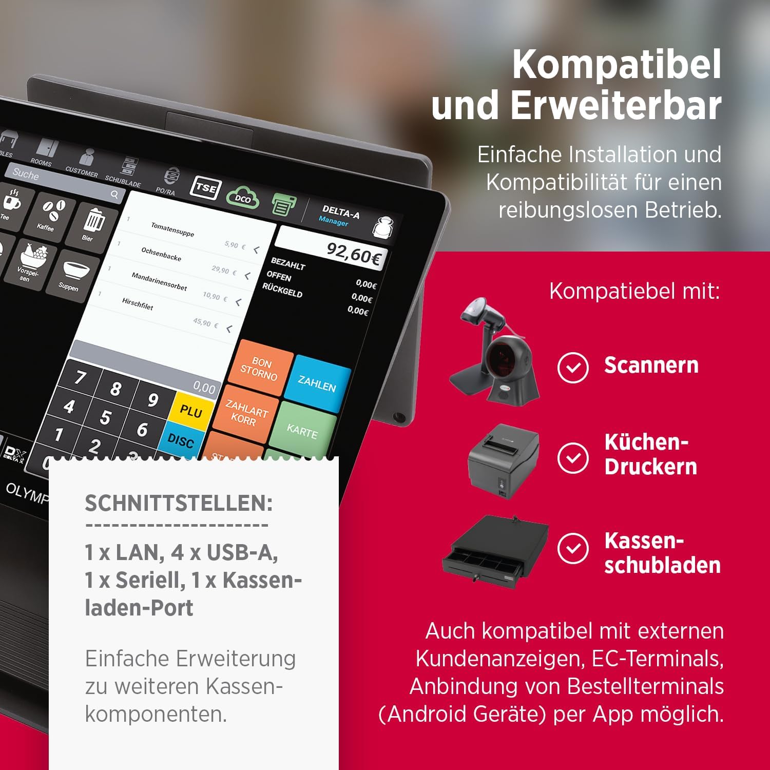 Olympia Registrierkasse Kassensystem T215DK 10,1 Zoll Premium Handel Gastronomie