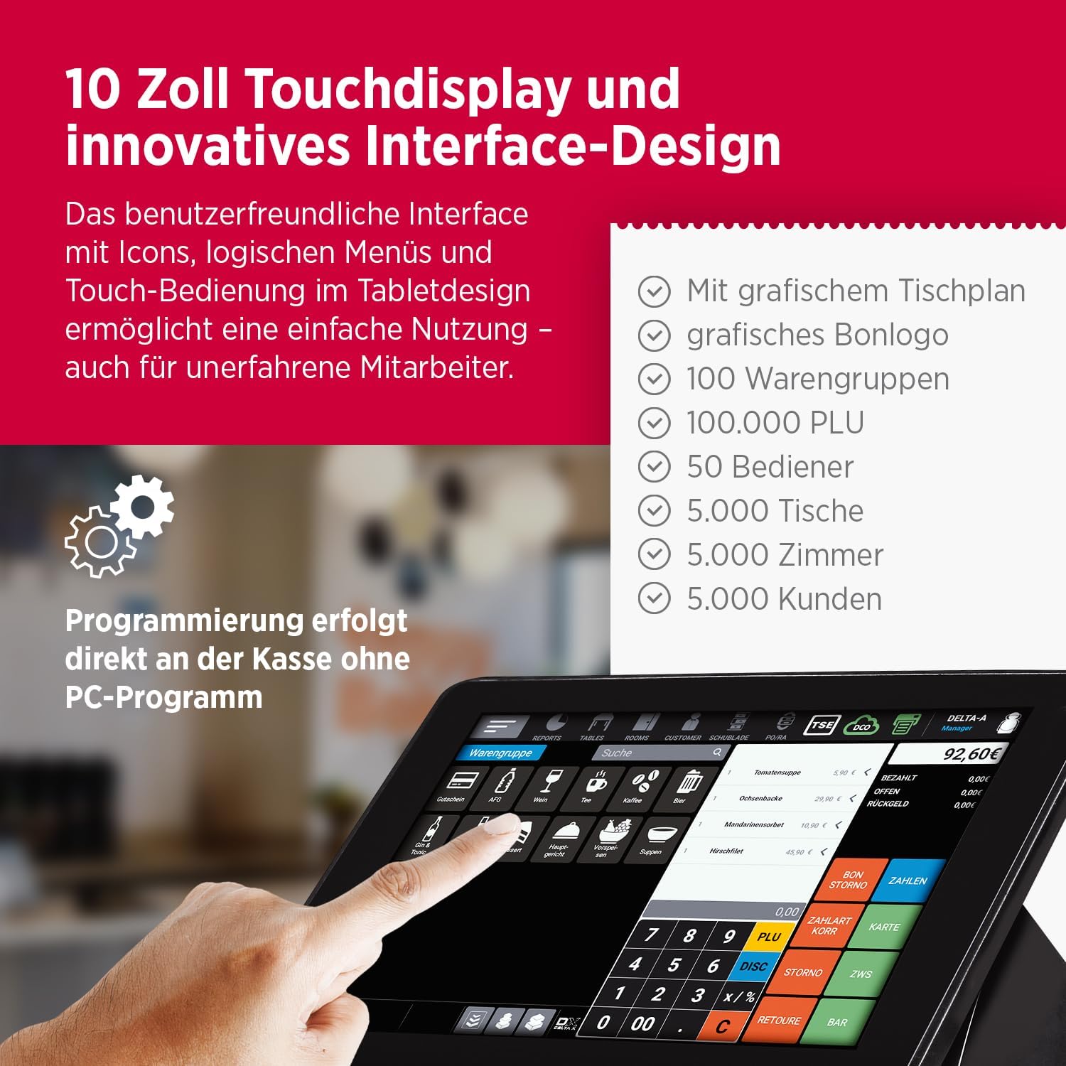 Ideal für die Gastronomie: Übersichtliche Tischverwaltung und einfache Bestellaufnahme. - 80 mm Thermodrucker mit Autocut