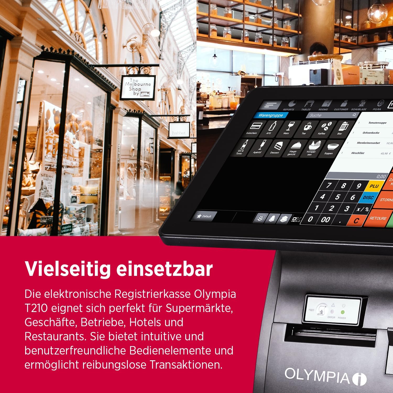 Die Olympia T210 kombiniert leistungsstarke Technik mit vielseitigen Funktionen und ist damit optimal für Handel und Gastronomie geeignet. Egal, ob Sie ein kleines Café, ein großes Restaurant oder einen Einzelhandelsbetrieb führen – mit der Olympia T210 sind Sie bestens aufgestellt.