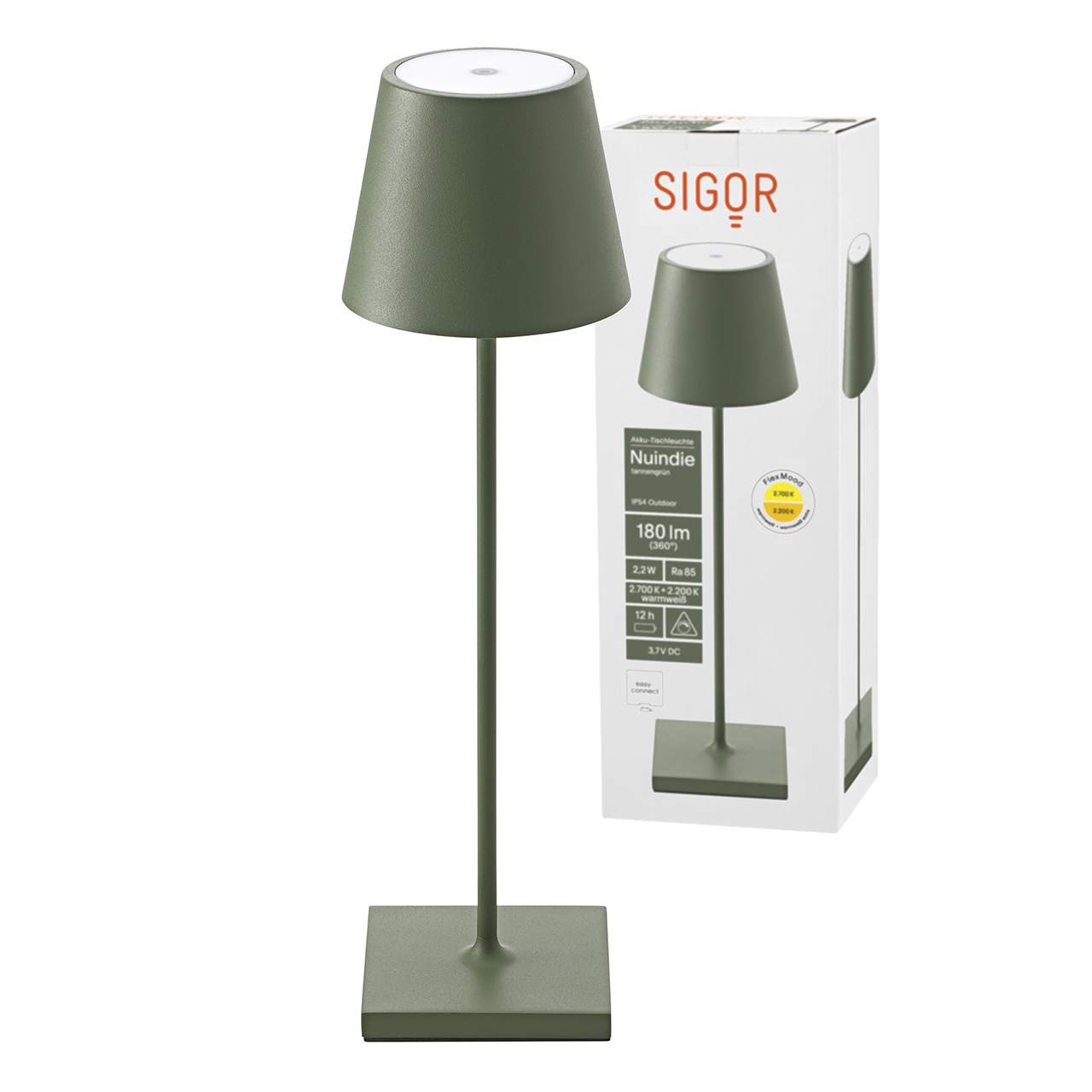 B-Ware Nuindie LED Akku Tischleuchte Außentischleuchte IP54 tannengrün Sigor Tischlampe