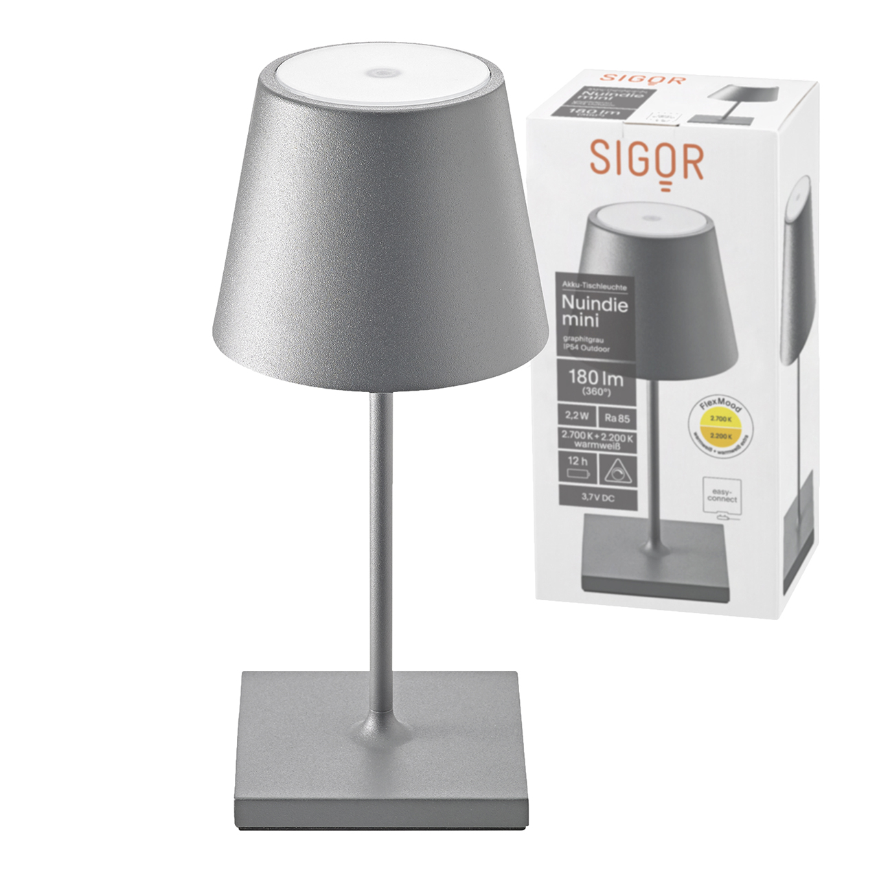 B-Ware Nuindie mini LED Akku Tischleuchte Außentischleuchte IP54 graphitgrau Sigor Tischlampe