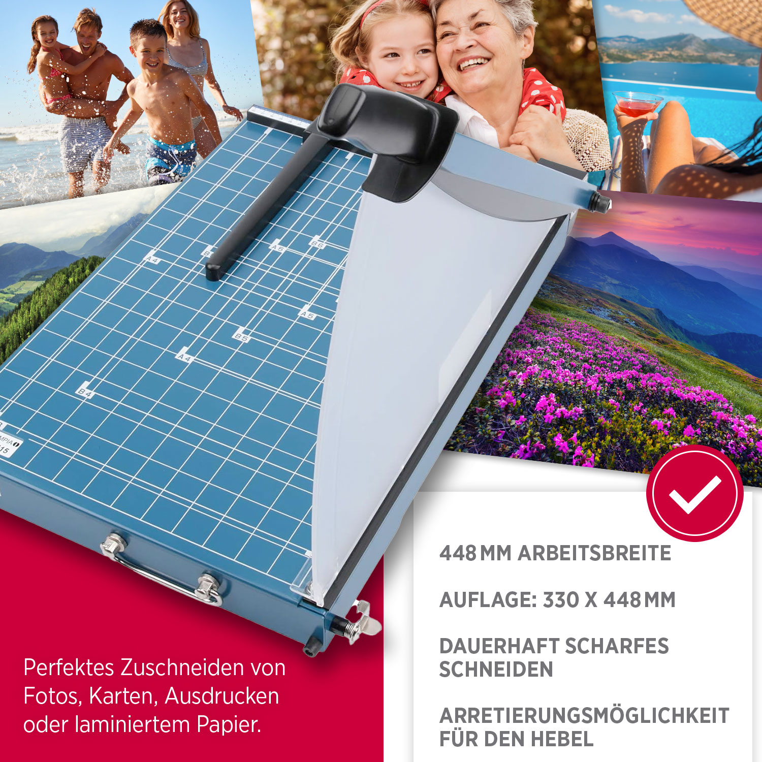 - Perfektes Zuschneiden von Fotos, Karten, Ausdrucken oder laminiertem Papier
