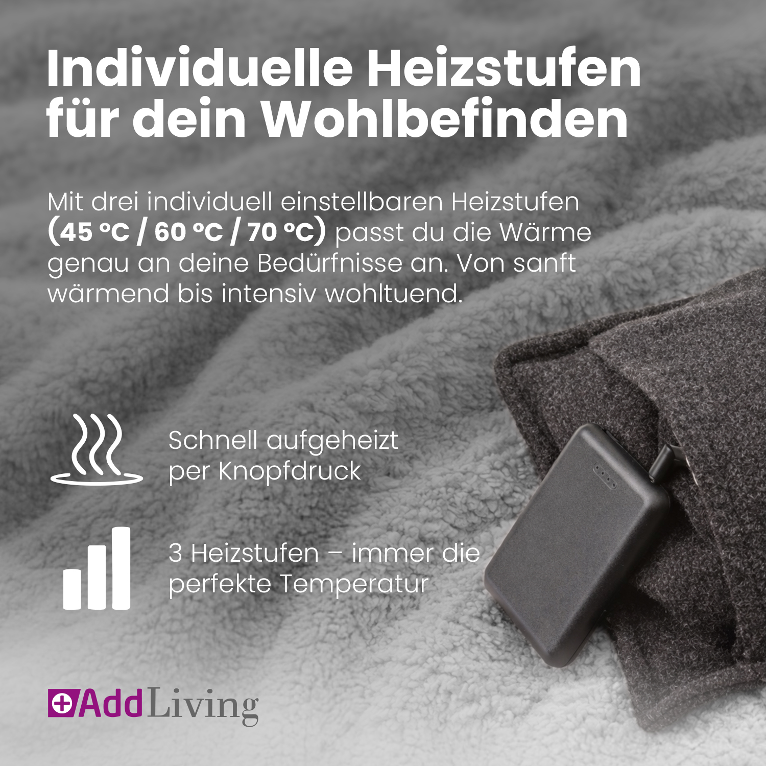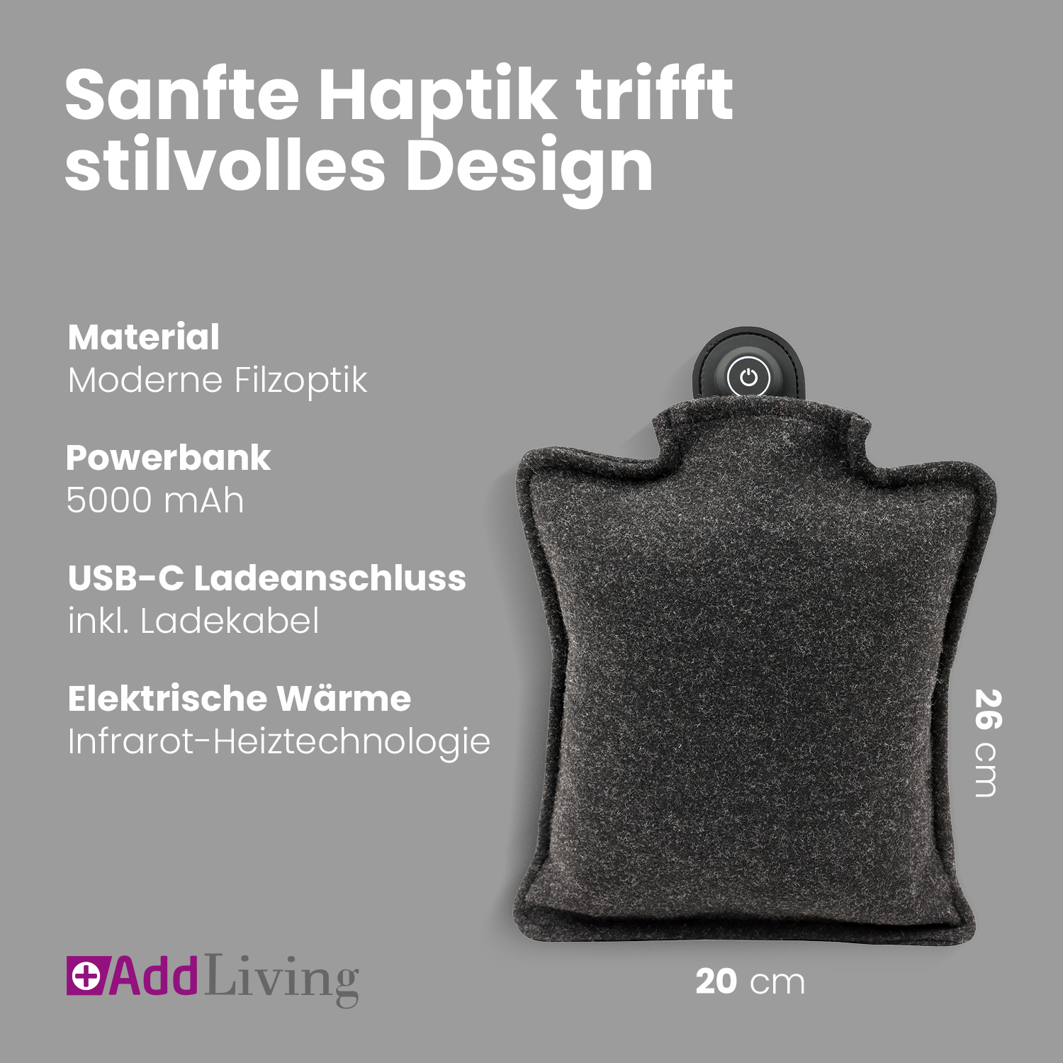 Addliving Elektrische Wärmflasche kabellos mit Powerbank Infrarot Filzoptik