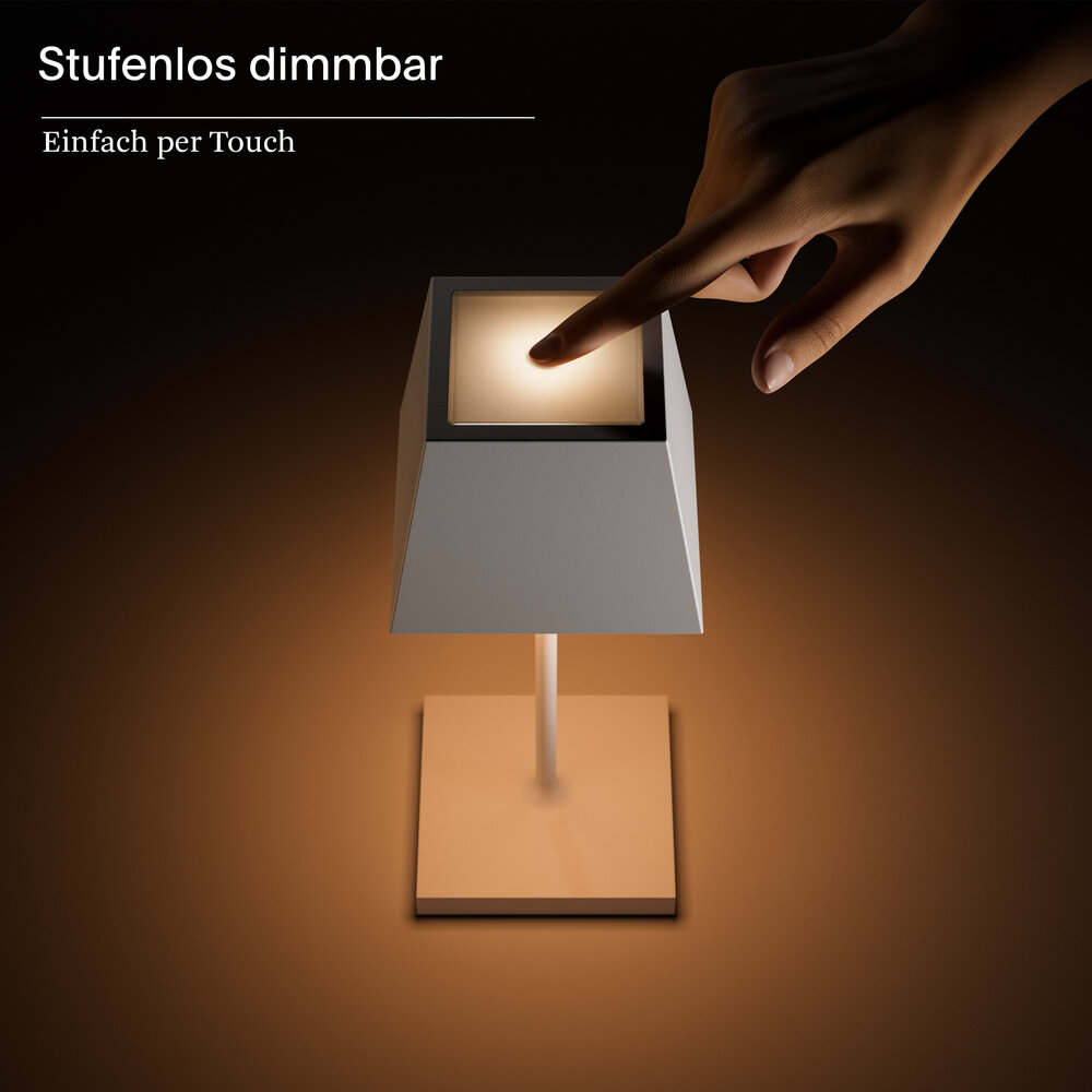- Einfache Bedienung: Über den intuitiven Touch-Schalter lässt sich die Lampe ein- und ausschalten sowie stufenlos dimmen. Das solide Eigengewicht von ca. 1 kg sorgt für stabilen Stand.